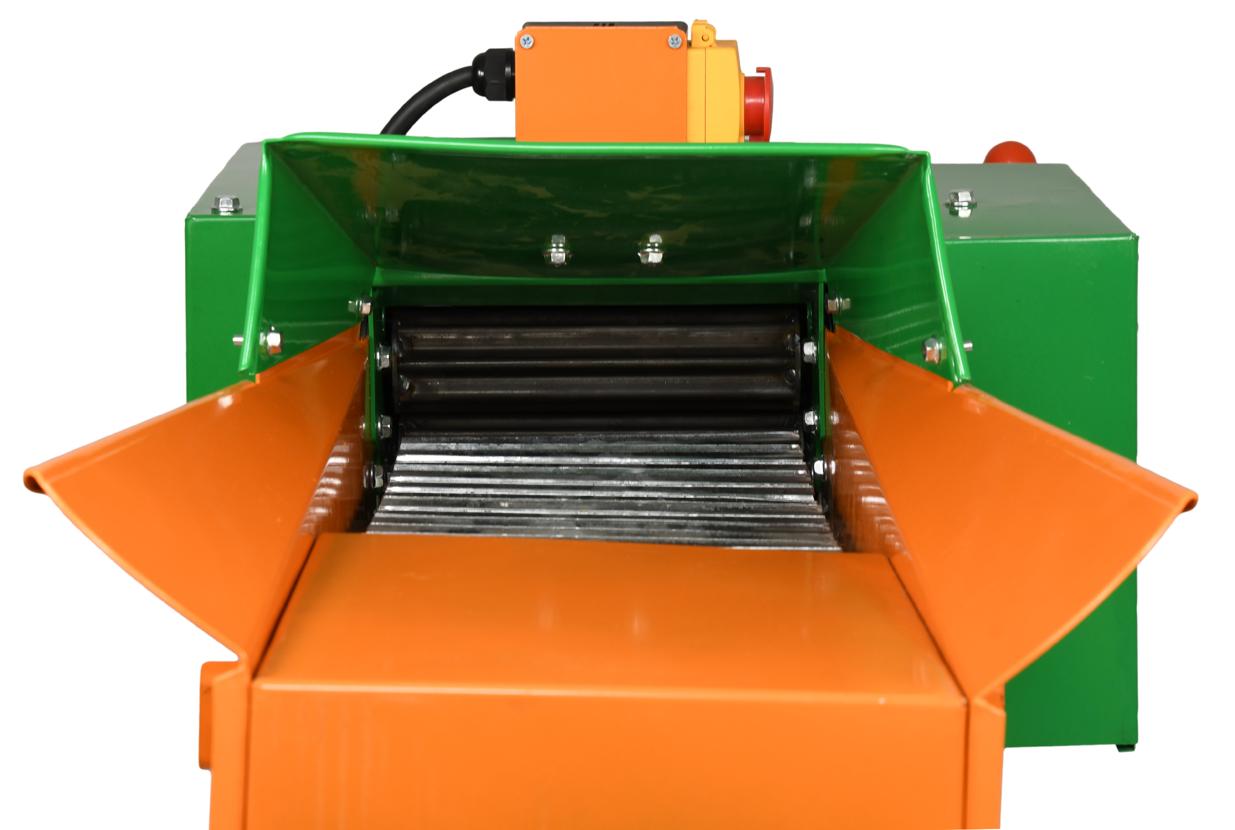Charakterystyczną cechą jest wysoko wydajny automatyczny przenośnik taśmowy. Specjalnie zaprojektowany metalowy pas wspomaga podawanie materiału do mechanizmu rozdrabniającego.