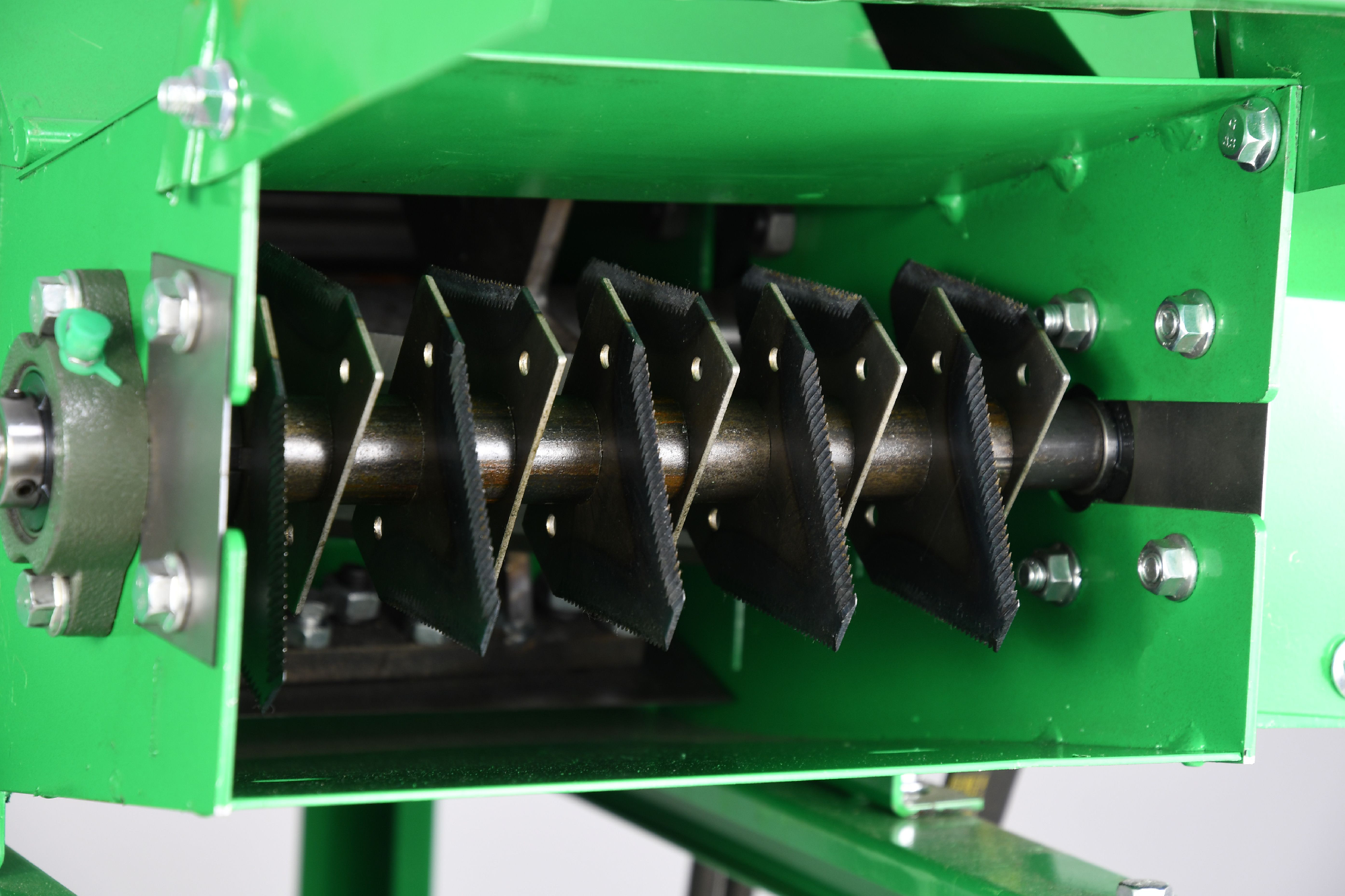Jedną z najważniejszych cech rozdrabniacza jest obrotowy dodatkowy wał wyrzutowy z aż 10 dodatkowymi ostrzami. Dzięki nim strumień zrębek jest dodatkowo mielony i wyrzucany. To rozwiązanie zapewnia nam brak możliwości zapchania urządzenia.